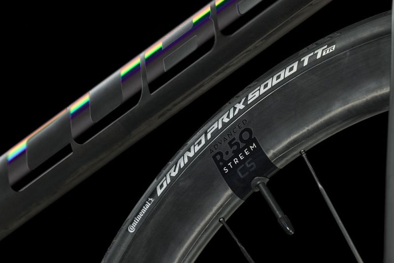 Ja, das Cube Litening AIR C:68X SLT entspricht in Sachen Gewicht und Rahmenkonstruktion den UCI-Regularien. Das war’s aber auch schon, denn der Rest dieser ultraleichten, superaerodynamischen und pfeilschnellen Carbon-Rennmaschine ist absolut außergewöhnlich. Newmen Advanced Laufräder mit Carbonfelgen und Carbonspeichen in Kombination mit superleichten Schwalbe Aerothan Schläuchen und durchdacht konstruierten Rohrprofilen lassen vermuten: Hier dreht sich alles um maximalen Speed und diese eine entscheidende Hunderstelsekunde.