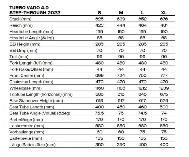 DATENBLATT FÜR SPECIALIZED TURBO VADO 4.0 – STEP-THROUGH CITY E-BIKE – 2023 – WHITE MOUNTAINS / BLACK REFLECTIVE